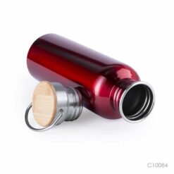 Retro style, 800ml capacity bottle. Body in stainless steel, in a wide range of bright colors. Security screw-on cap in stainless steel, with wooden detail and vintage, carrying handle.
