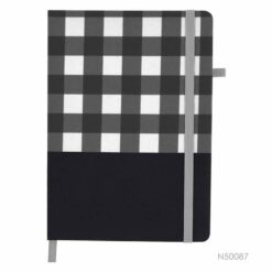 Polyurethane cover notebook matching colored bookmark ribbon with 80 pages lined paper, elastic strap closure and pen loop.